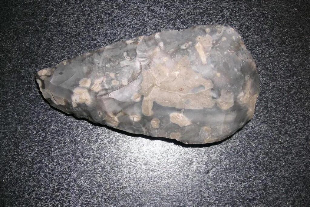 Les bifaces du Paléolithique sont taillés sur les deux faces du nucléus. D’abord grossier et aux contours sinueux, le biface se régularise et s’affine. Le type final aboutit aux magnifiques amandes acheuléennes.